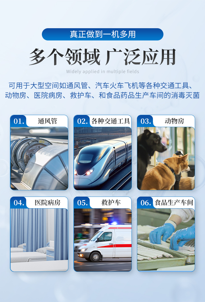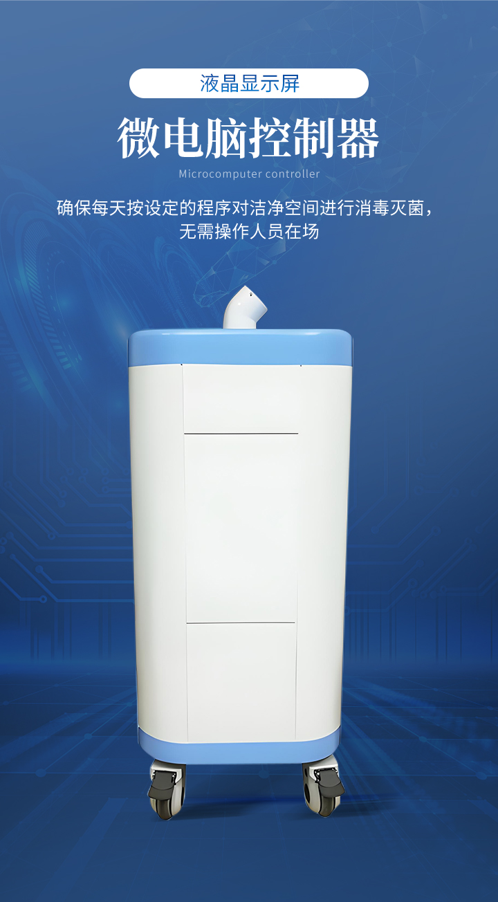 6、采用高速风机送风系统,能使产生的消毒液颗粒有效到达洁净区的不同区域; 7、适用于各种大小不同的空间或表面的消毒灭菌;单台设备理论上可用于0-500m3空间的消毒灭菌,完全符合GMP验证要求; 8、真正做到一机多用,可用于大型空间如通风管、汽车火车飞机等各种交通工具、动物房、医院病房、救护车、和食品药品生产车间的消毒灭菌; 9、通过生物指示剂(BIS)黑色枯草芽孢杆菌和嗜热脂肪芽孢杆菌验证,完全可以达到10的杀灭率; 10、配有微电脑控制器,液晶显示屏,确保每天按设定的程序对洁净空间进行消毒灭菌,无需操作人员在场; |