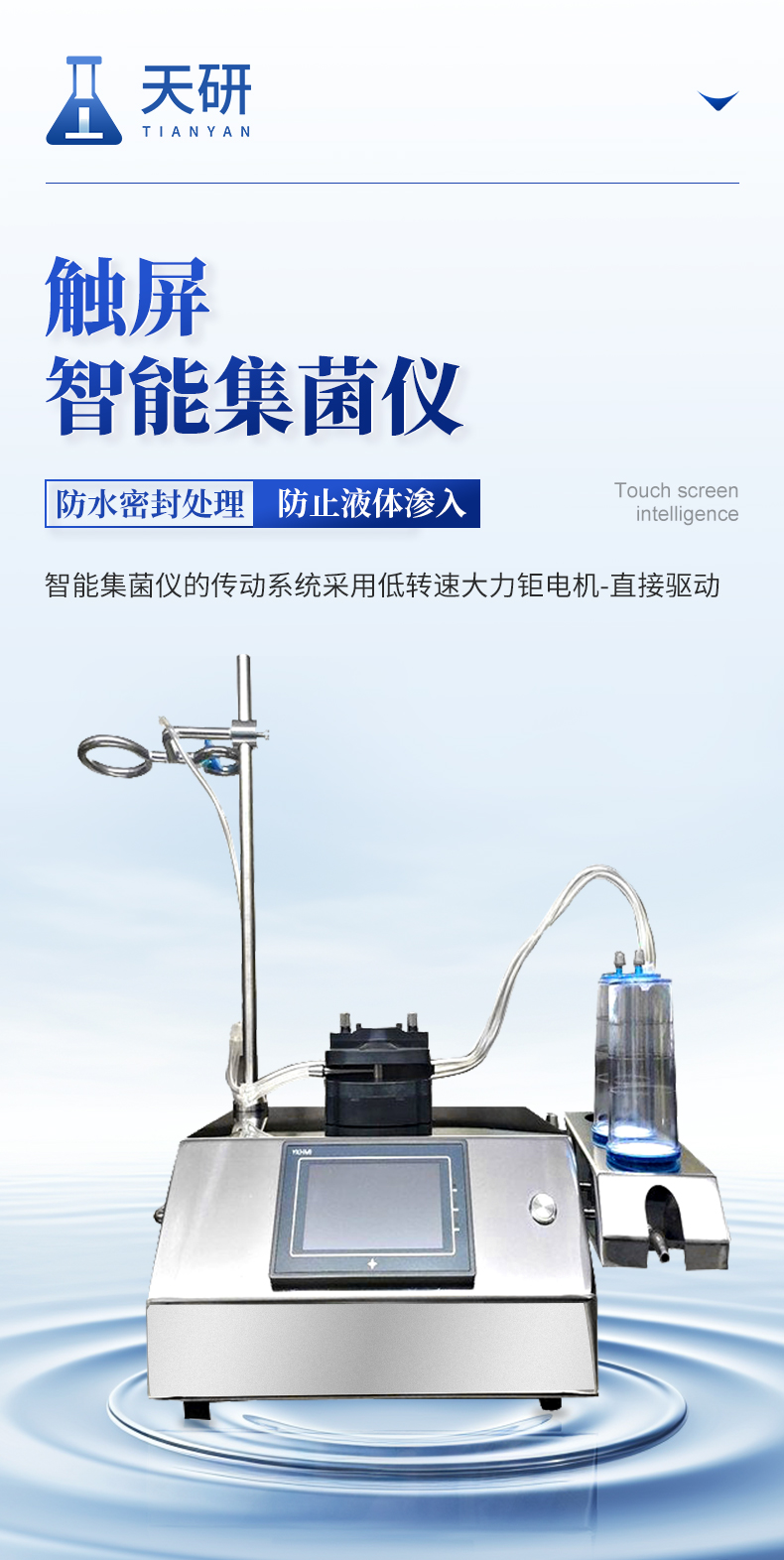 产品详情:智能集菌仪简述: 智能集菌仪是一次性使用全封闭集菌培养器的配套使用设施,产品质量可靠,采用L304卫生级不锈钢一体化超小型设计,满足无菌室、微生物室高洁净仪器要求;通过定向蠕动加压原理实现微生物截留、冲洗及培养,适用于制药、医疗器械、食品饮料、环保等多行业的无菌检查和微生物限度检查。